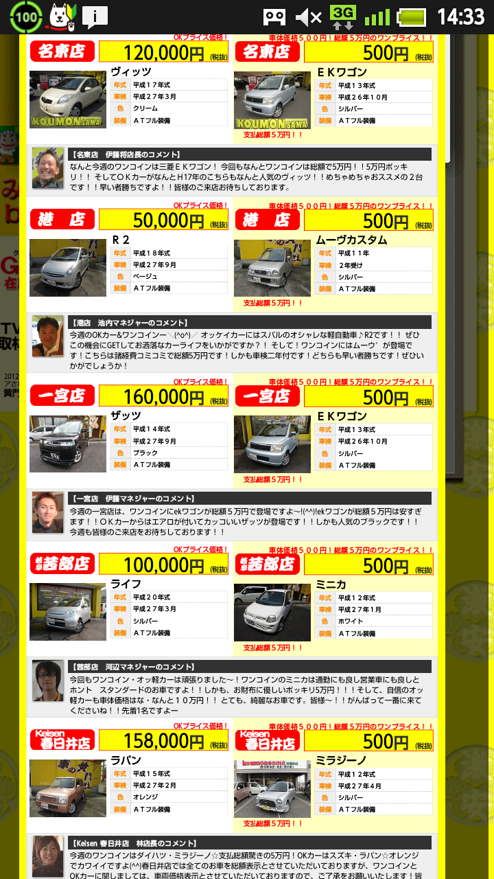 一応車検には通ってるから安心だと思いたいお・・・。値段を取るか安心をとるか・・・、車だおしね。