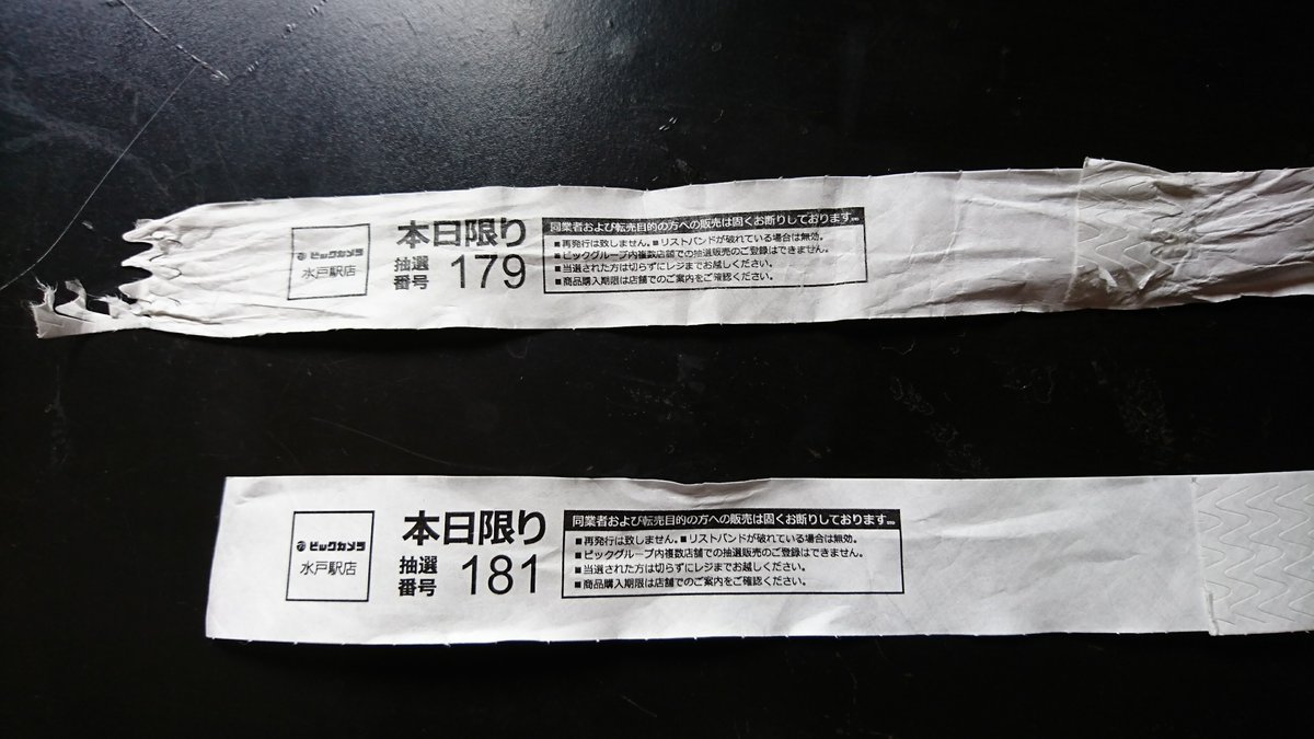 ビックカメラ水戸駅店では、7月21日の9時から10時までリストバンド型の抽選券を先頭の1番から順に