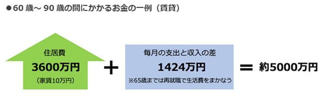 「60歳から90歳まで30年間に必要な住居費は、家賃10万円として3600万円です(更新料除く)。また家計調査(平成28年)によると、2人以上無職・世帯主65歳以上世帯の支出は26万7446円(税金・社会保険料含む)で、うち住居費が1万4294円なので住居費を除く生活費は25万3152円。