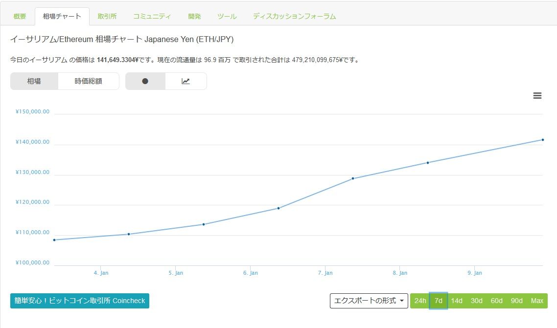 イーサリアムは先日リップルに時価総額を抜かれて、どうなる事かと思っていたが、そこまで落ちる事もなく安定して伸びているな。