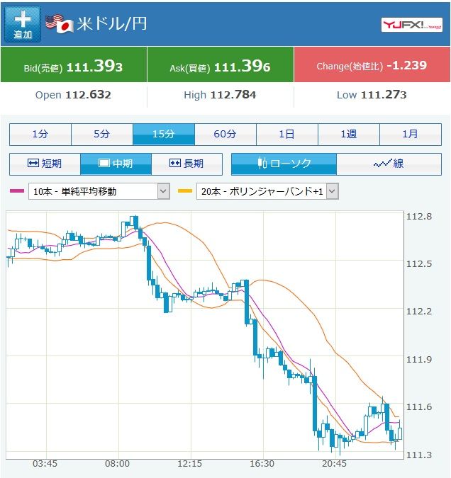 さあドル円何回目だろうか。111.300割れるかどうか。割れたらショート反転したらロング