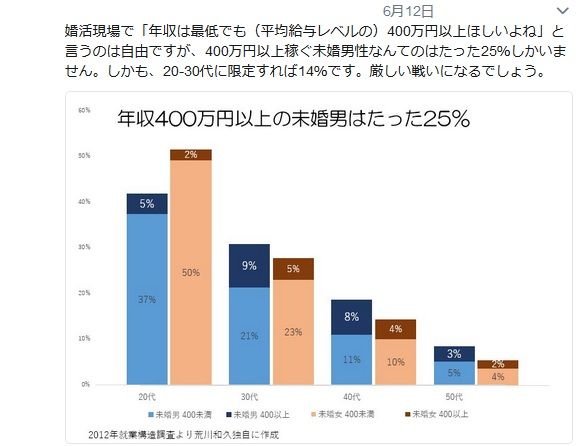 平均程度稼ぐ男性かつ未婚男性はたった25%・・・、4人に1人。