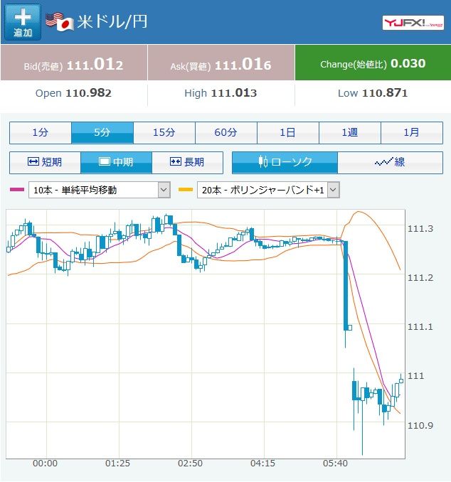 朝っぱらから。 ドル円、窓開け↓↓↓