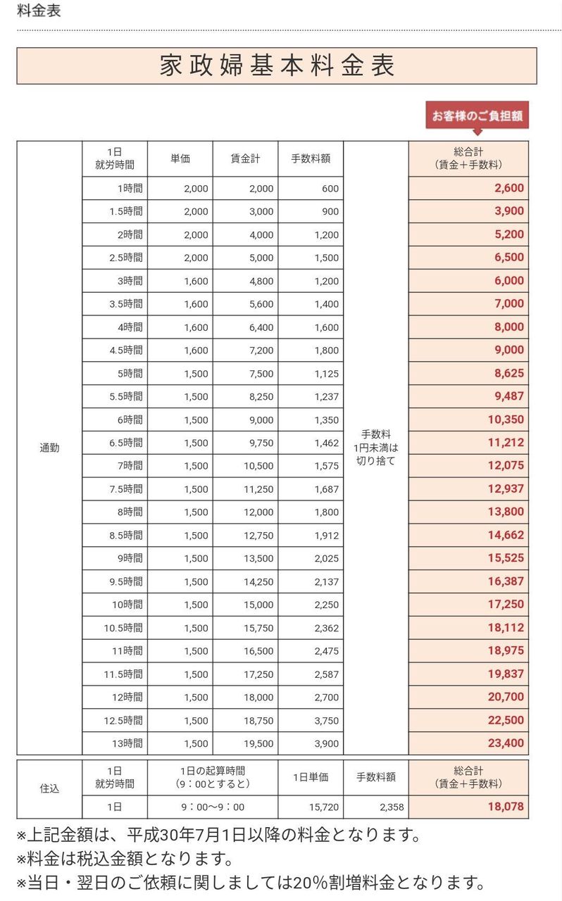 知らんけどこの表自体は家政婦サービスやってるとこの料金表なんじゃないの