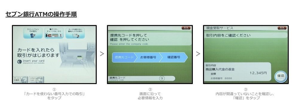 セブン銀行ATMでの操作画面