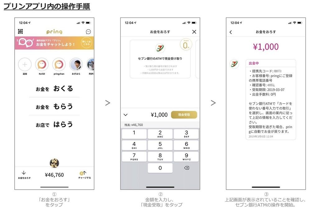 無料送金アプリ「pring」セブン銀行ATMでの出金に対応いたしました。