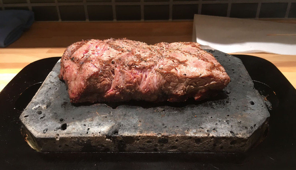あくまで高級感あるステーキ用の肉を、顧客の求めるグラム数で、職人がその場で巨大なブロックを切って焼き、アツアツのまま鉄板で提供するのが売りだ。