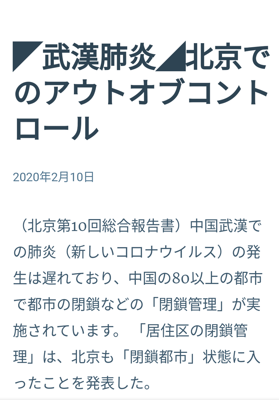 いつのまに北京封鎖したんだ?って思ったもの。