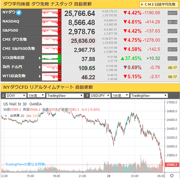 最終的にはカリフォルニア州の報道もあり、ダウは1190.95ドルの大幅安となったお。