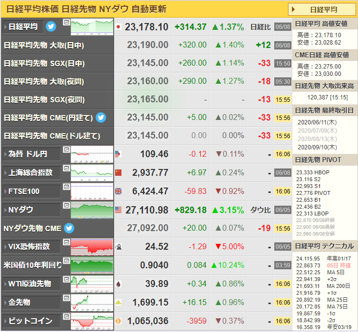 ダウ先がイマイチ伸びていない点は少し気になるけれど、金曜日の伸びを考えれば多少下げてもまぁという感じだお。