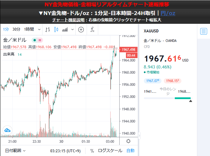 FOMCからの声明文発表後、金価格はプラスに転換(+0.4%)